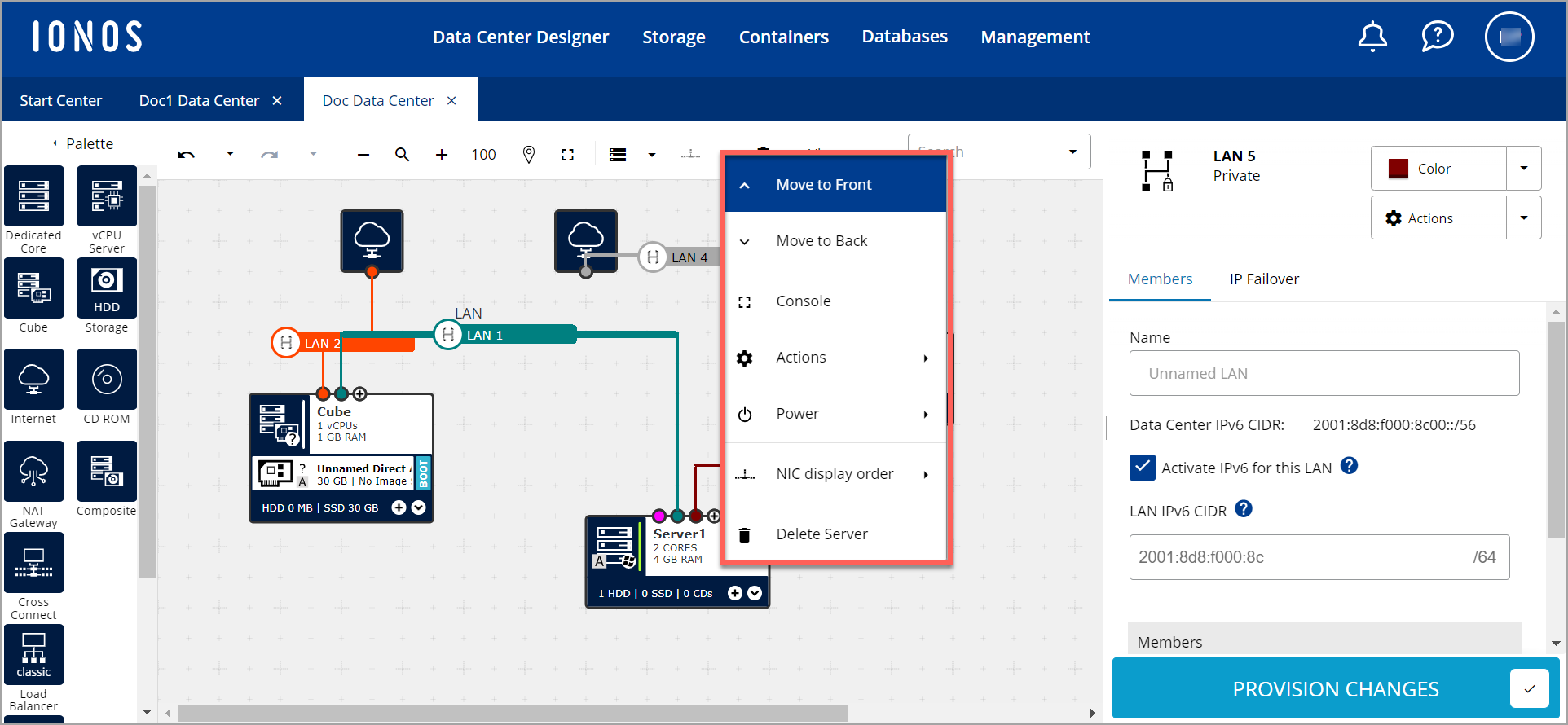 This pane allows you to finalize the creation of your data center. Once your VDC is set up, select PROVISION CHANGES. This makes your infrastructure available for use.